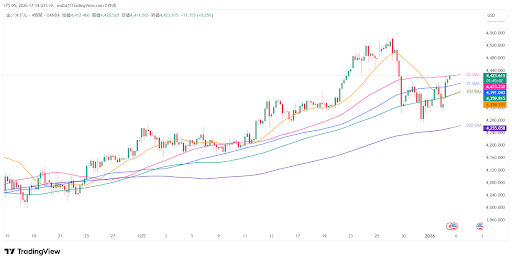 | 利確 (TP) | TP1: $4,450 / TP2: $4,600 |