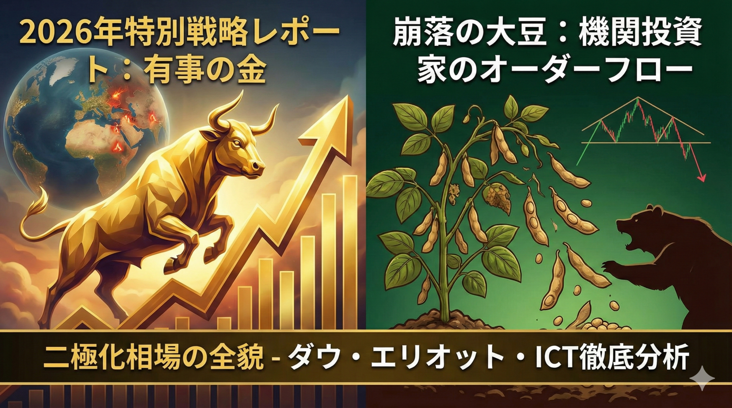 本投稿では、私が信頼を置く「テクニカル・トライアド」──ダウ理論で海図を広げ、エリオット波動で現在地を知り、ICTで機関投資家の背中を捉える──この3つの武器を駆使し、今まさに市場の主役となっている**ゴールド(XAUUSD)と、静かに崩壊の時を迎えている大豆先物(ZS1!)**を徹底解剖します。