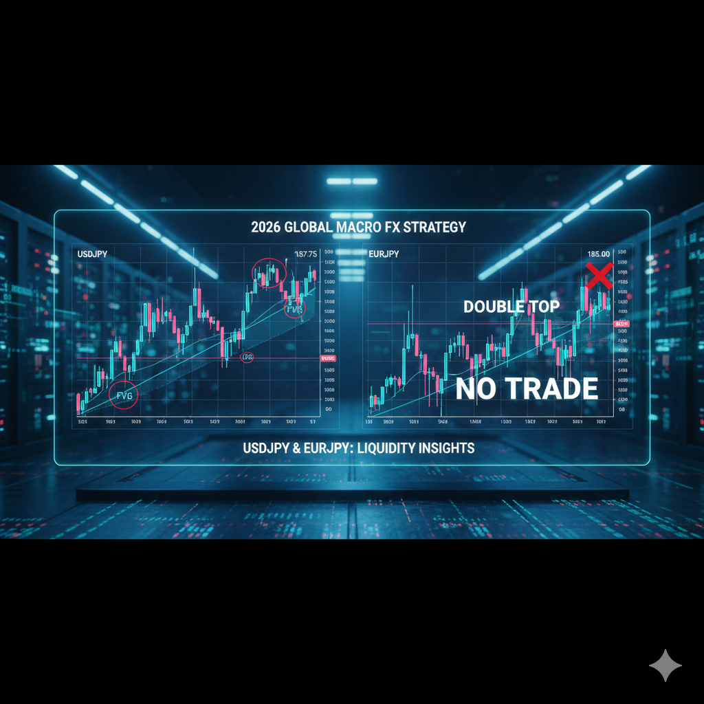 本投稿では、ダウ理論、エリオット波動、そしてICT概念(FVG/OB)という「プロの武器」を使い、USDJPYとEURJPYのチャートに隠された機関投資家の意図を読み解いていきます。専門用語も噛み砕いて解説しますので、相場の鼓動を共に感じていきましょう。