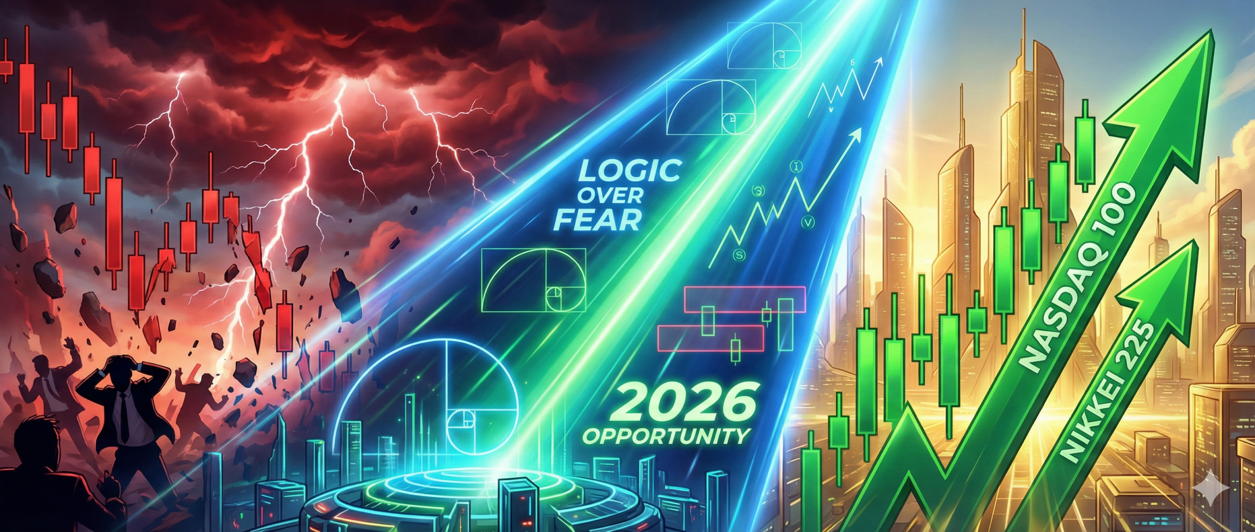 今回分析する Nasdaq 100 (US100) と 日経225先物 (NIY1!) は、まさに今、その構造的な分岐点に差し掛かっています。多くの人が恐怖でポジションを手放したその場所で、機関投資家はどこで拾おうとしているのか? その答えを、ロジックを使って一緒に紐解いていきましょう。