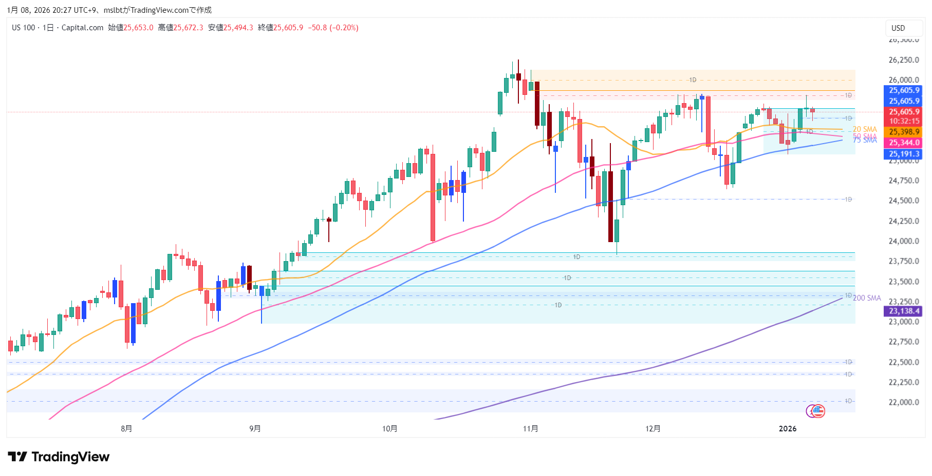 AIブームの主役として2025年を駆け抜けたNasdaq 100。2026年もその支配力は健在です。ただ、直近の動きは調整色を強めており、迷っている方も多いはず。テクニカルのメスを入れて、この動きを解剖してみましょう。