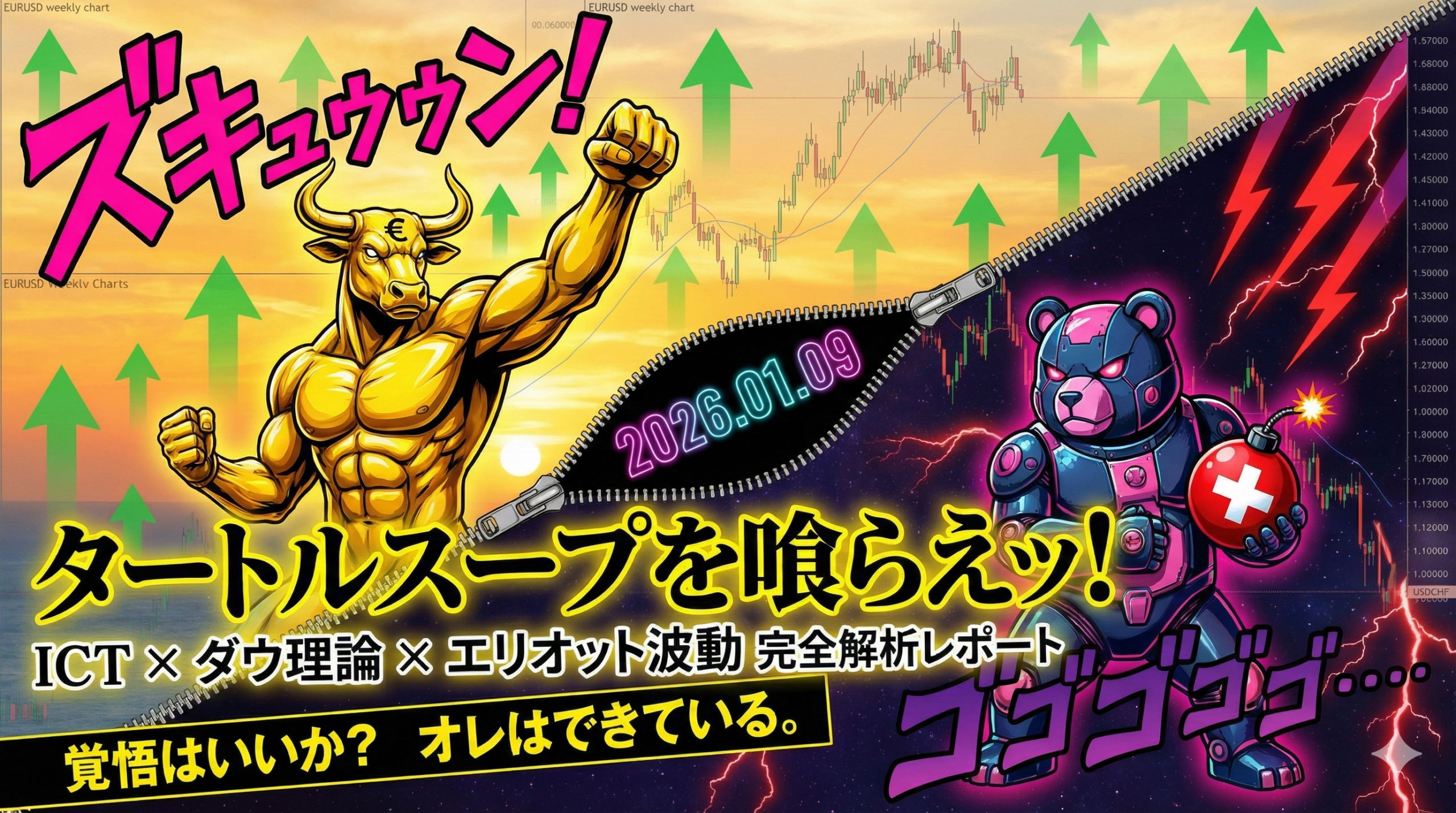 「てめーは俺を怒らせた」。EURUSDは長きにわたるドルの支配に対し、怒りの反撃を開始したようだ。週足レベルでのMSSは、承太郎が時を止め返した瞬間に等しい。トレンドは明確に「Bullish (強気)」へと転換しつつある。